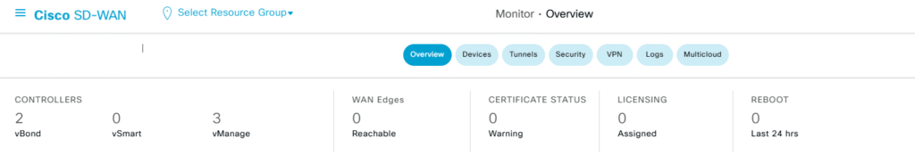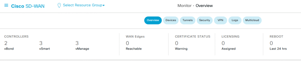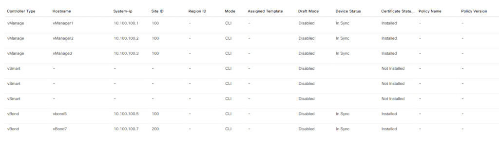 There we go! We have all three devices configured and ready to go to add them to the controller, if you already read my previous two post you will figure out how actually look like my SD-WAN Manager overview now, but if not. below you will find it, now I just have three Managers and two Orchestrator on it.