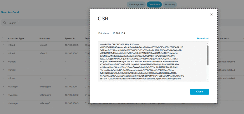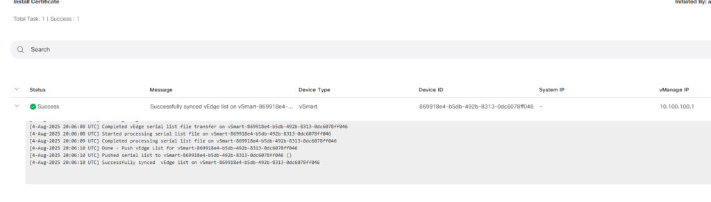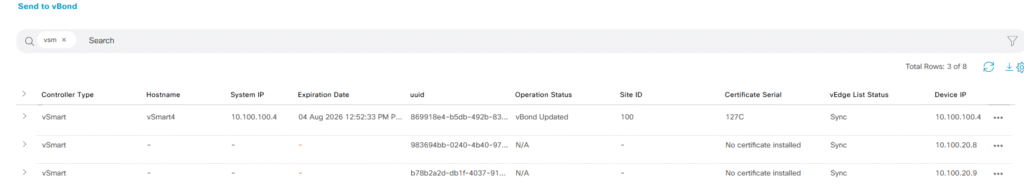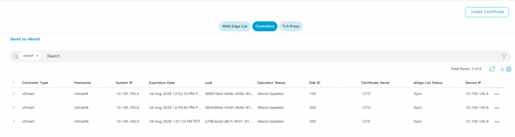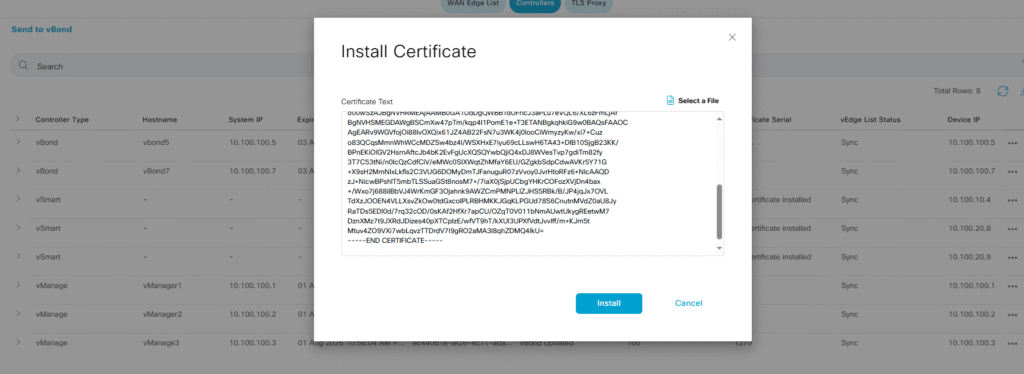 After a few seconds or minutes the Manager will process the certificate and it will send this information our vBonds allowing to the new Controller being part of the infrastructure.