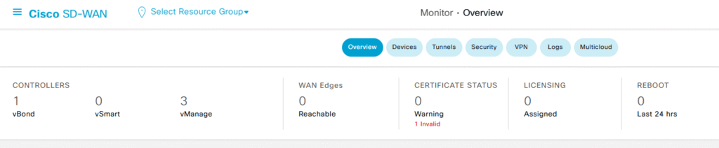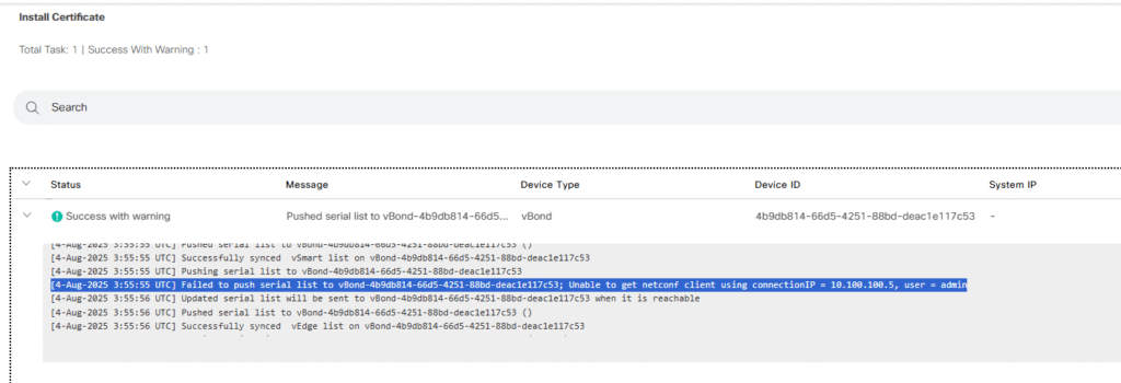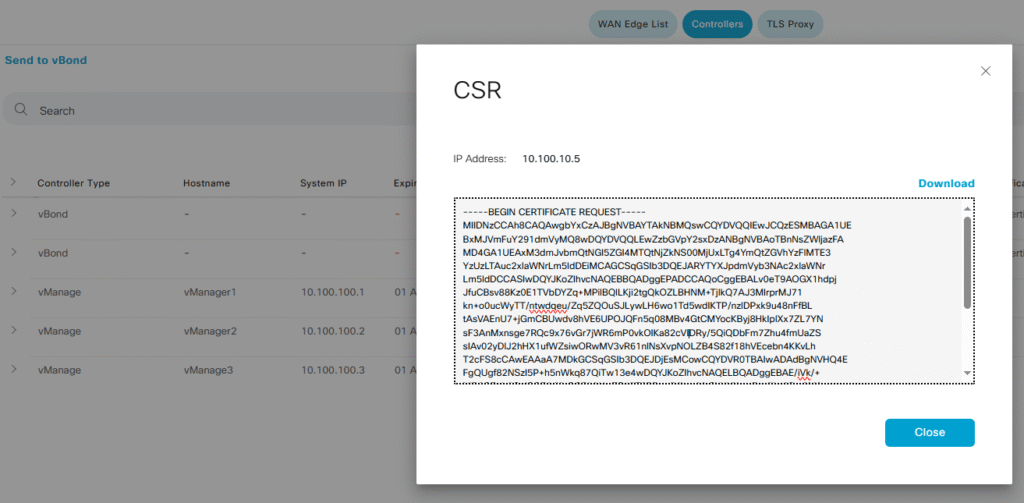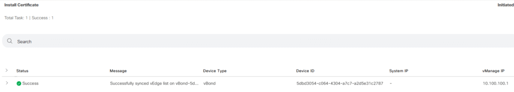 After adding both vBonds we should have both devices under our Manager devices, but we need to generate the CSR certificate, sign it and then install them into the Manager (we only need to do it in one Manager since all of them are sync)