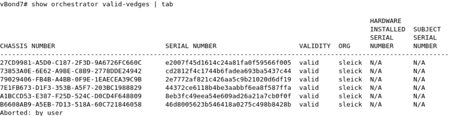 Both vBond devices have all the information about our environment, for example the cEdge list.